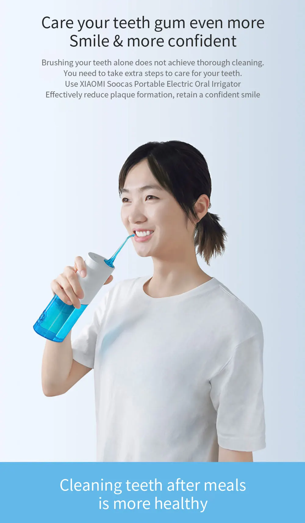 A Soocas vízsugaras szájzuhany új szintre emeli a szájhigiéniát. Ez a modern oral irrigátor kifejezetten úgy lett tervezve, hogy a hagyományos fogmosást kiegészítve alaposan tisztítsa a fogközöket, az ínyt és még a nyelvet is. A vízsugár hatékonyan távolítja el a lepedéket, ételmaradékot és baktériumokat, ezáltal hozzájárul a friss lehelethez és az egészséges szájflórához..